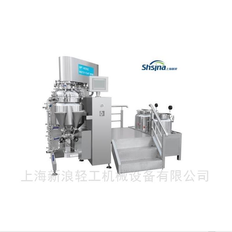 SXL系列日用化妆品真空均质乳化机由乳化锅(可升降锅盖、翻转式锅体)水锅、油锅、真空装置、加热及温度控制系统、冷却系统、电器控制系统等组成。原料在水锅、油锅内通过预热、搅拌进行混合反应后,由CBI分散系统在无外部动力情况下产生的高速离心力同时吸入均质工作腔体,在定转子高速作用下所有物料瞬间被剪切、分散,再由乳化锅上部双向搅拌桨混合均匀;再通过内外循环管路流回罐里,继续混合、剪切,也可以通过切换管路阀门来调节循环路径的长短,从而控制批次流量;